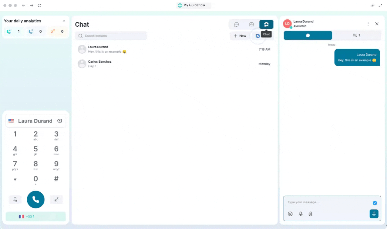 Ringover inclut un système de chat interne pour vous aider à communiquer facilement avec vos collègues.