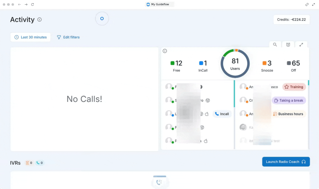 Vous pouvez facilement écouter les appels actifs directement depuis votre tableau de bord.