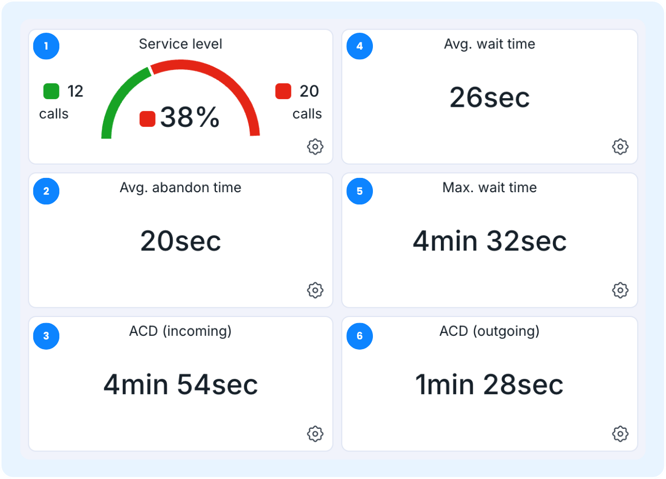 Les indicateurs de performance vous permettent de surveiller facilement les mesures d'appels de votre équipe et de suivre la qualité du service en temps réel. Dans ce guide, vous apprendrez comment consulter vos indicateurs essentiels et configurer des alertes colorées visuelles directement sur votre Dashboard.
