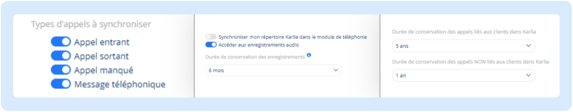 - Les tags et les notes des appels sont également synchronisés dans Karlia.