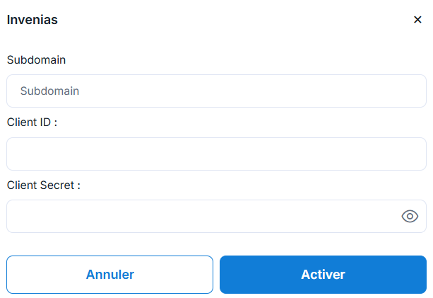 - Vous devez créer une application tierce à partir de l'API Invenias (voir les étapes détaillées ci-dessous)