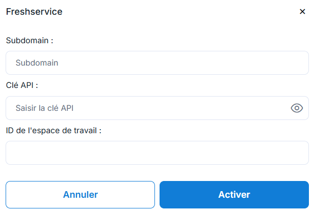 L'intégration doit se faire avec compte administrateur de Freshservice