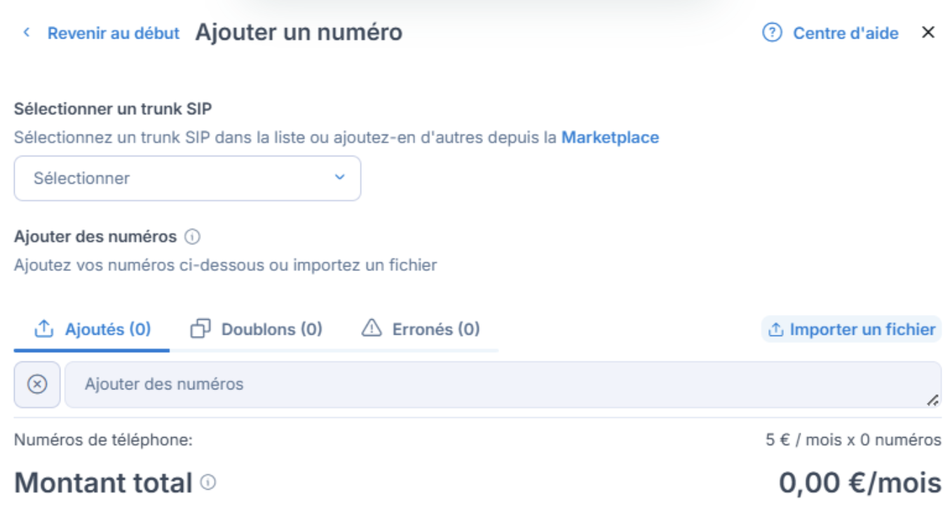 1. Rendez-vous dans Configuration>Numéros et cliquez sur "Ajouter un numéro".