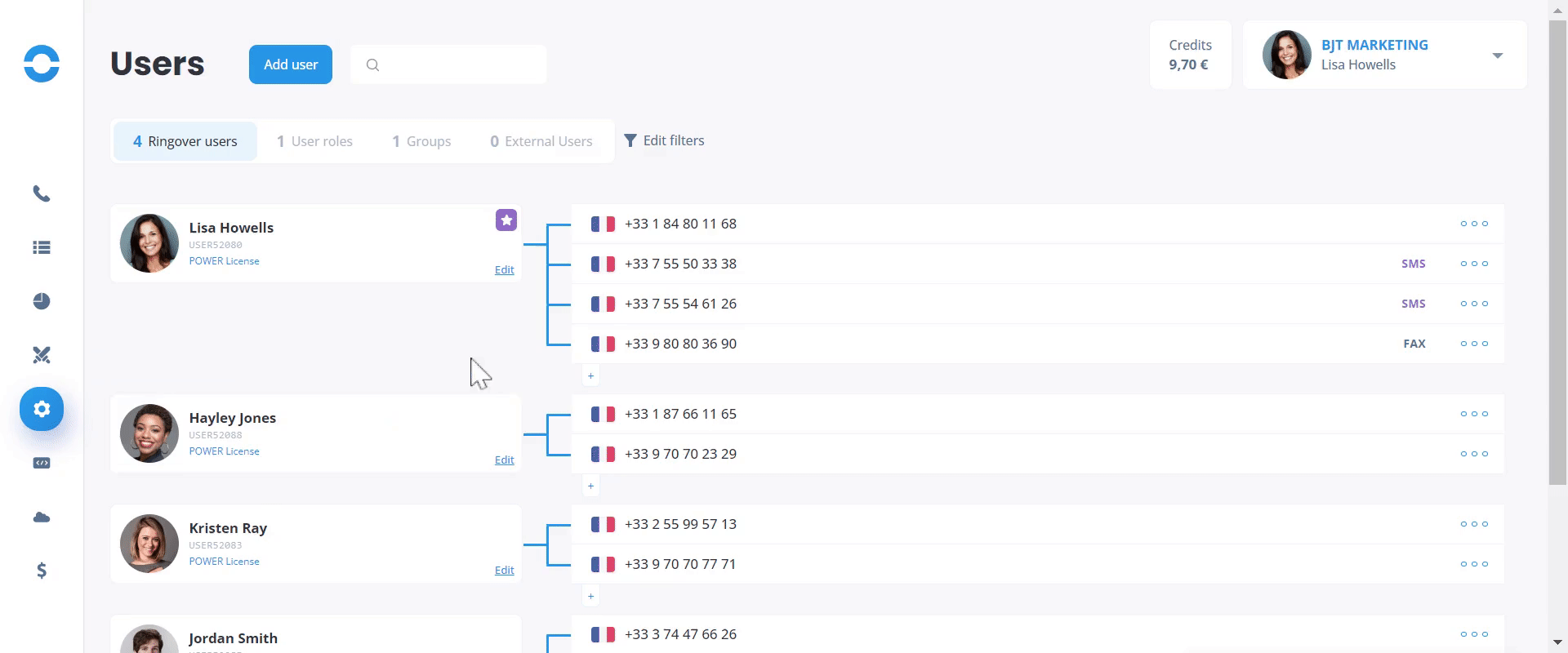 - 💻 Accédez à votre Tableau de bord Ringover> Paramètres> Utilisateurs