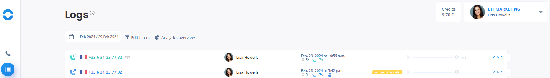 Une fois l'enregistrement activé, vous pouvez facilement accéder aux appels enregistrés :