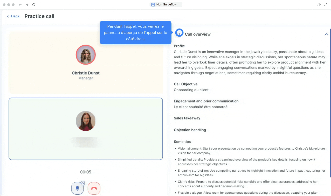 - Pendant l’appel, l’interface vous assiste activement.
