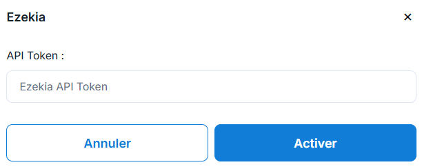 Une fenêtre pop-up apparaîtra, dans laquelle vous devrez coller le jeton API généré dans votre compte Ezekia.