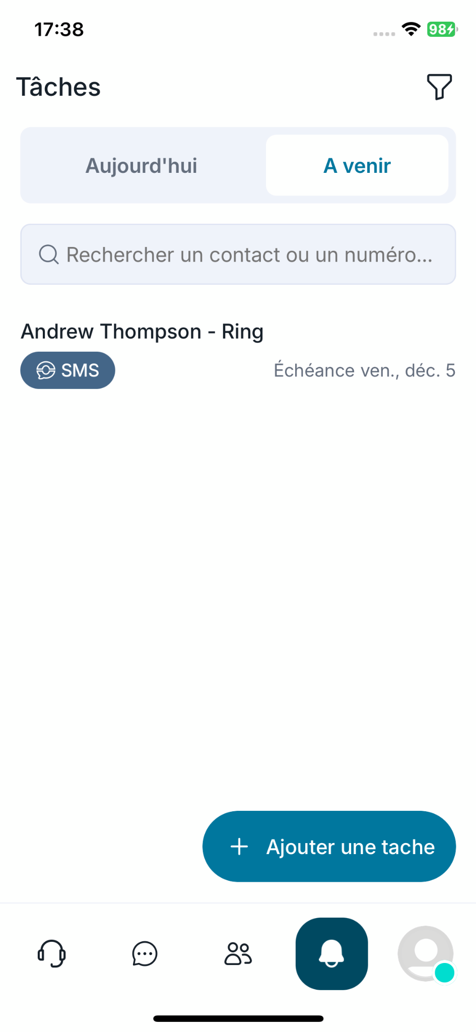 Les tâches vous permettent de planifier vos actions de suivi (appel, SMS ou visio) directement depuis l’application mobile Ringover. Voici comment créer une tâche en quelques étapes.