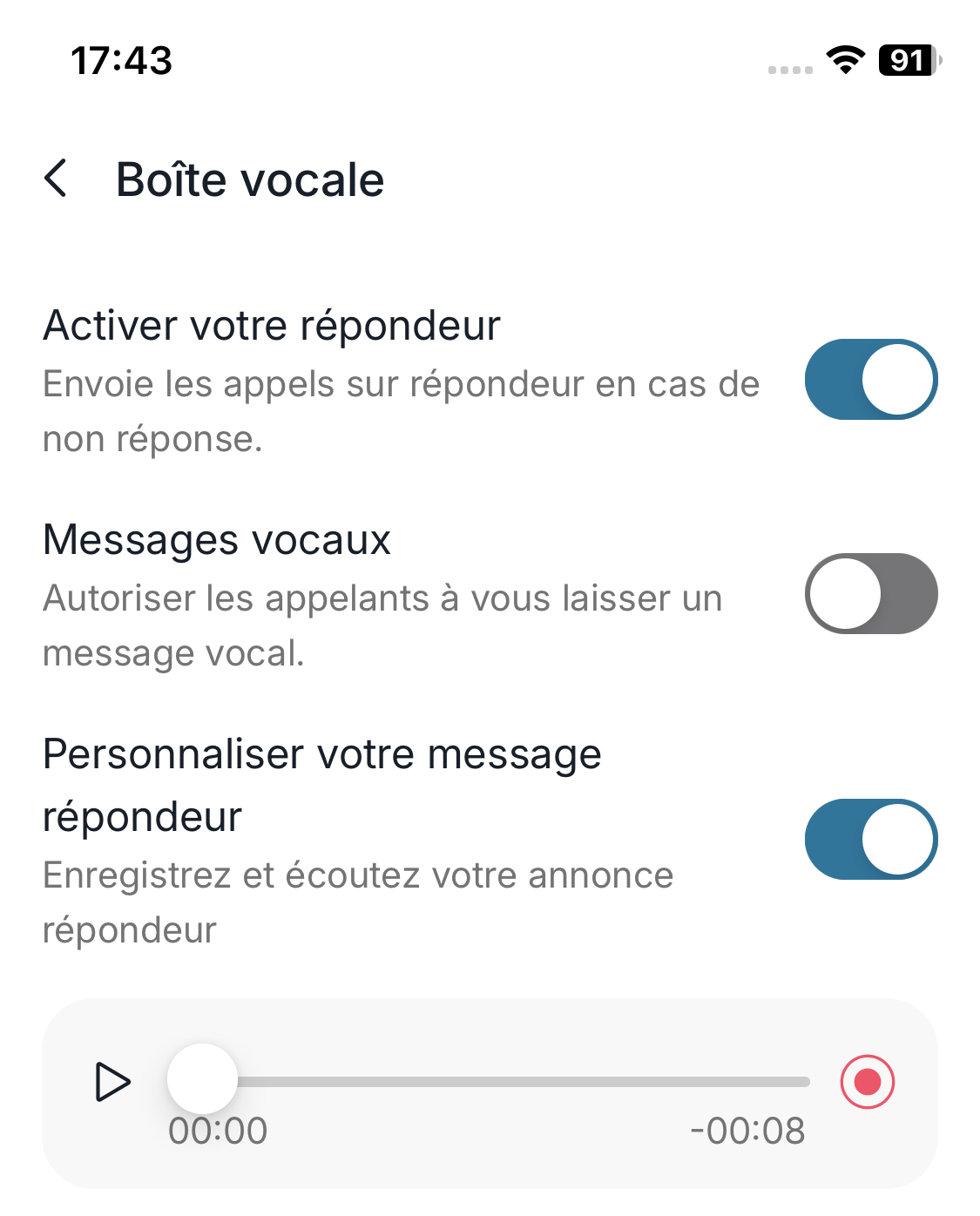 - Autorisez les messages vocaux afin que vos correspondants puissent vous laisser un message.