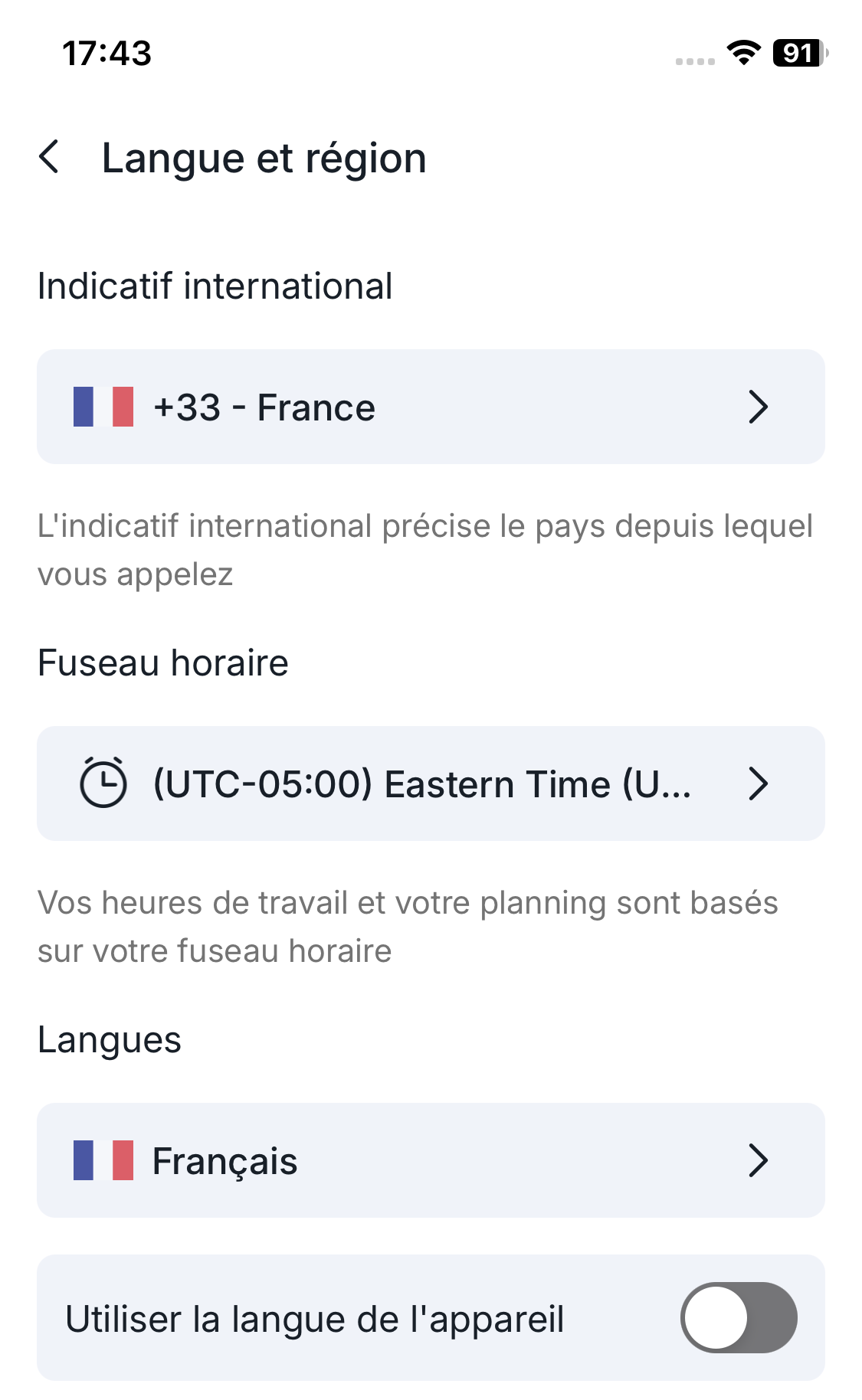 - Choisissez la langue de l’application ou activez Utiliser la langue de l’appareil.