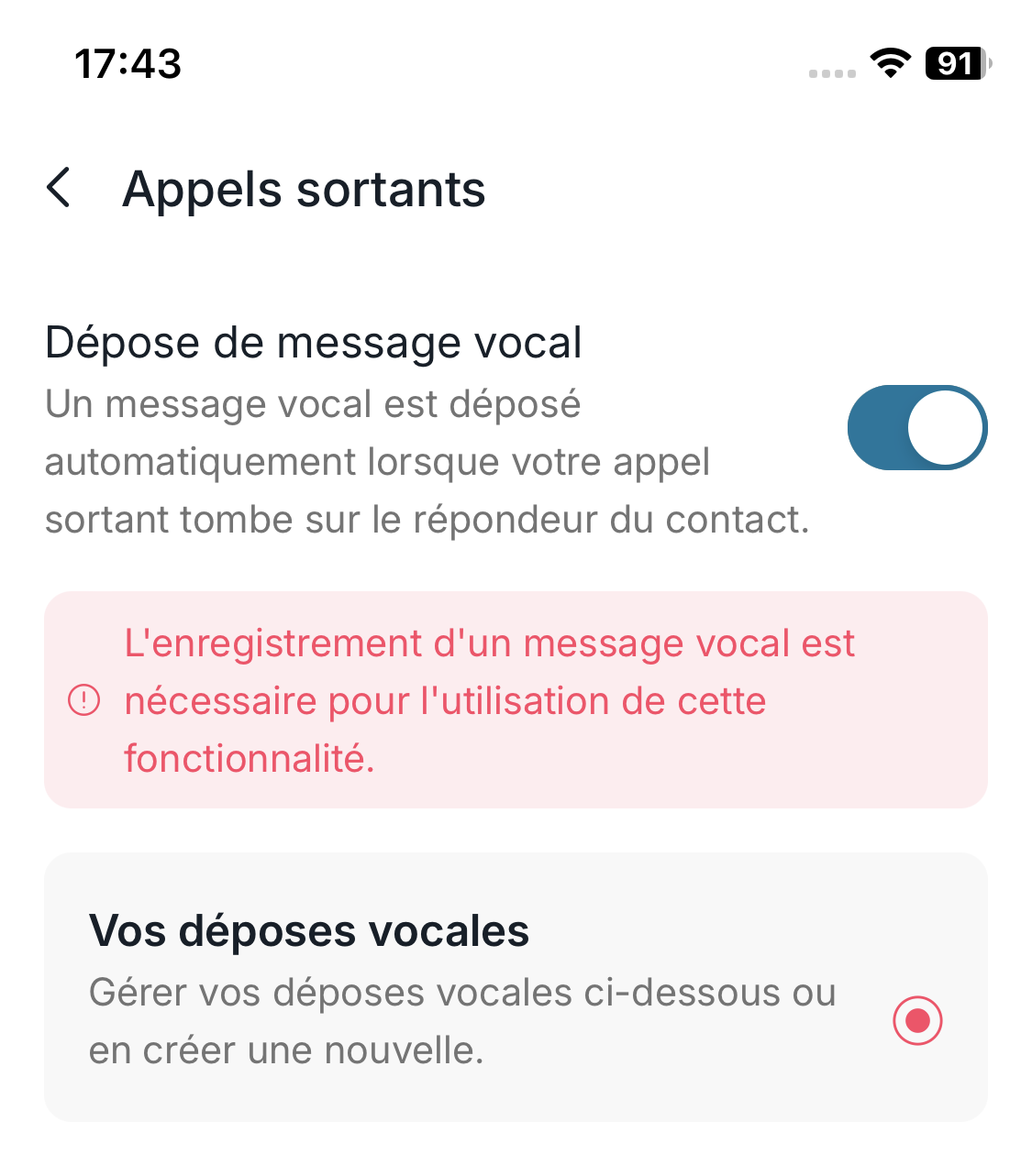 - Activez la dépose de message vocal si vous tombez régulièrement sur des répondeurs.