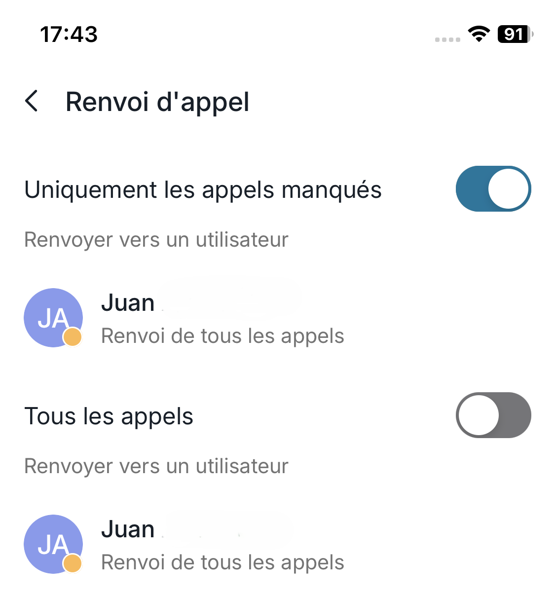 - Choisissez Uniquement les appels manqués pour assurer une continuité de service tout en gardant la main sur vos appels.