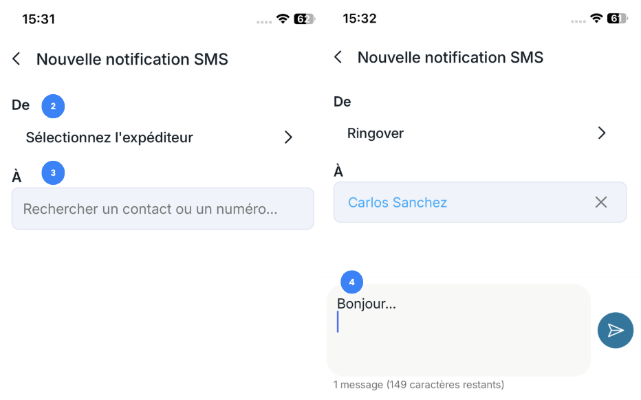 Rédigez et envoyez votre notification SMS.