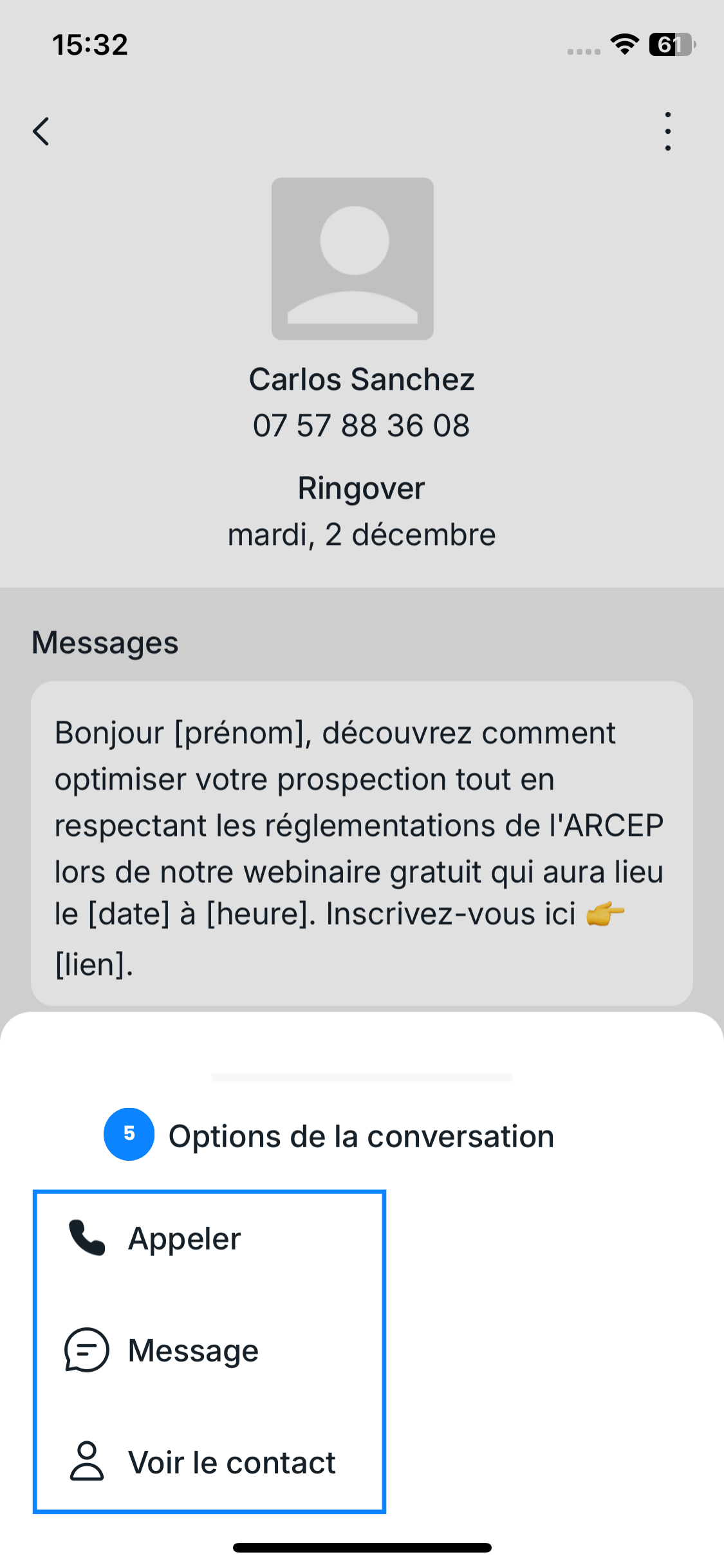 - Voir les détails du contact