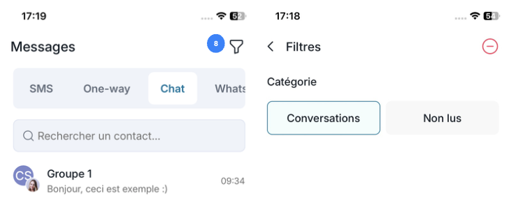 5. Vous pouvez également utiliser les filtres pour retrouver plus facilement vos SMS.
