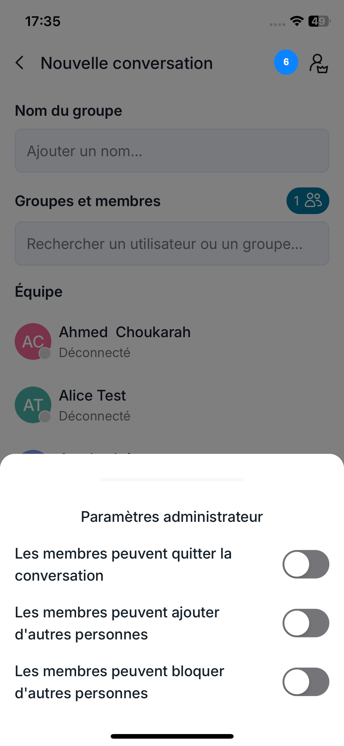- Recherchez ou sélectionnez les membres du groupe.