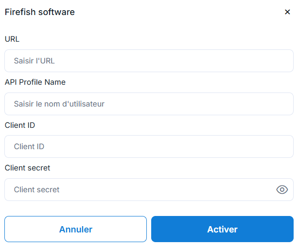 Ensuite, renseignez vos informations Firefish et cliquez sur « Activer ».