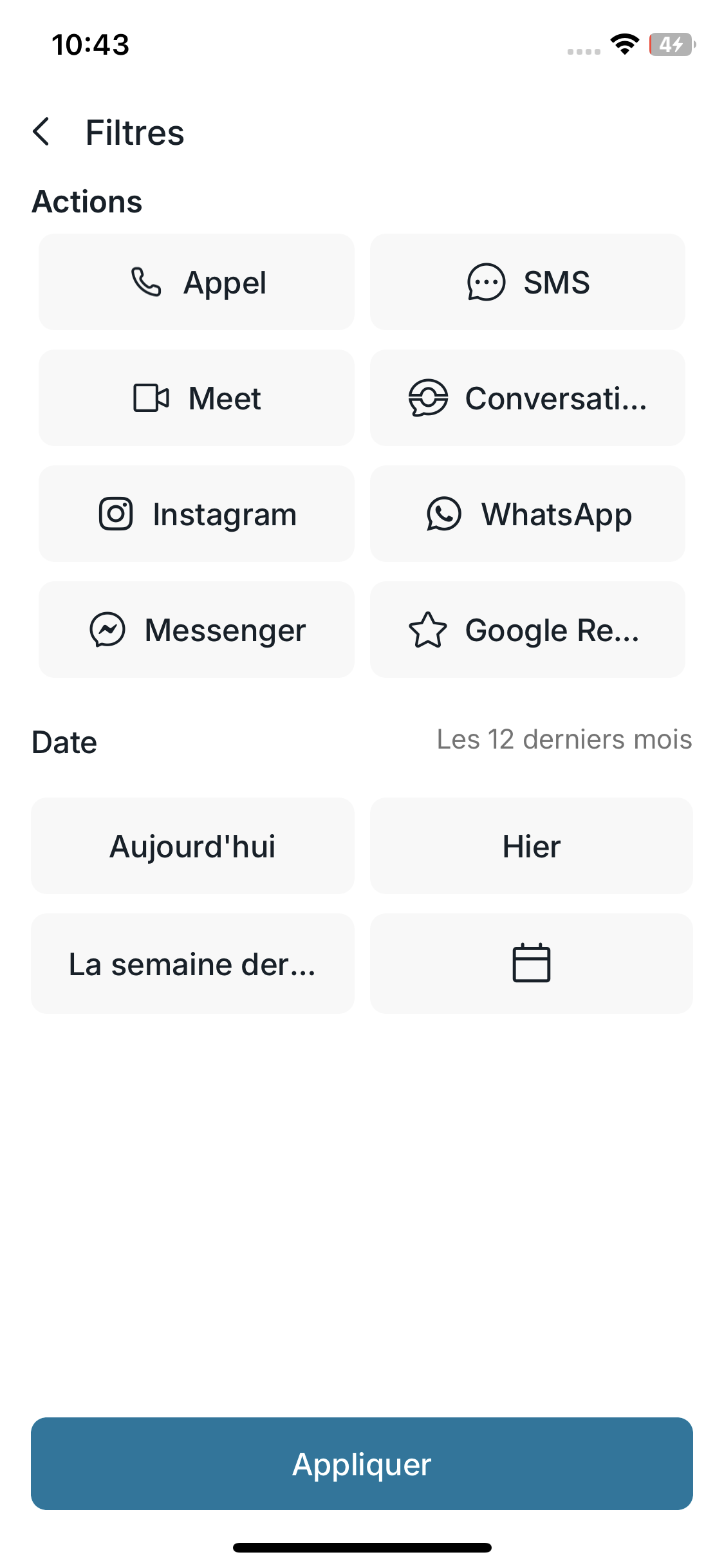 Une fois vos critères sélectionnés, appuyez sur Appliquer pour afficher les résultats correspondants.