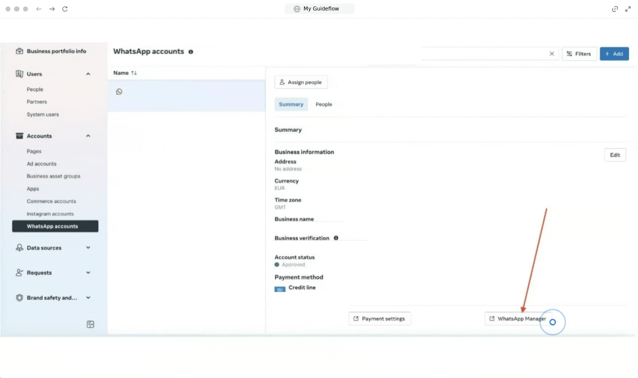 • Si votre entreprise ne possède pas encore de portefeuille Meta Business, créez-en un en suivant les instructions officielles de Meta