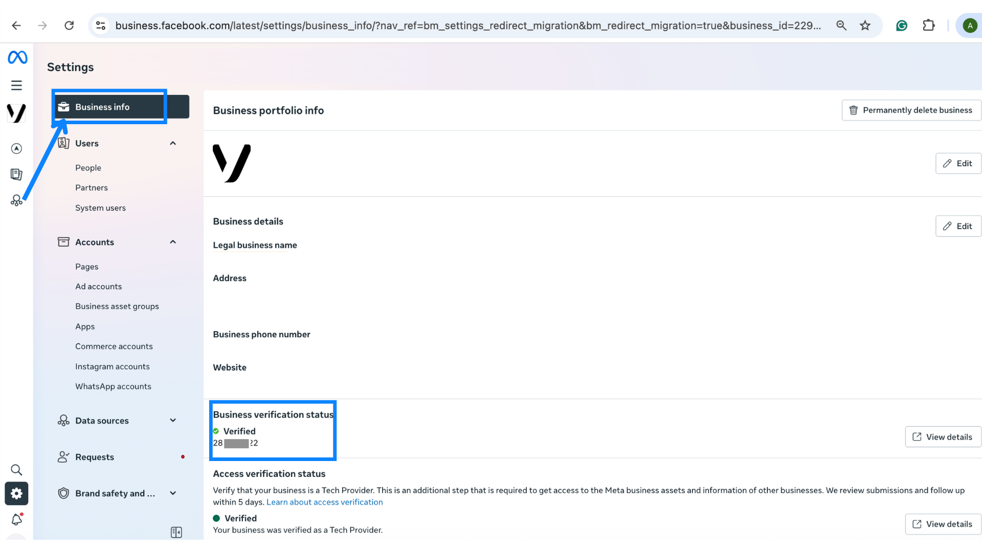 👉 Vérifiez ou créez votre portefeuille Meta Business