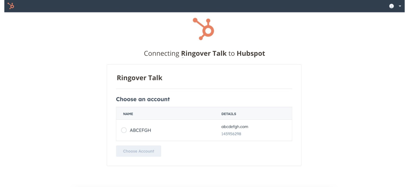 2. Vous êtes redirigé vers la page de connexion entre Ringover Talk et Hubspot. Il est nécessaire d’être connecté à votre compte Hubspot en parallèle sur votre navigateur.