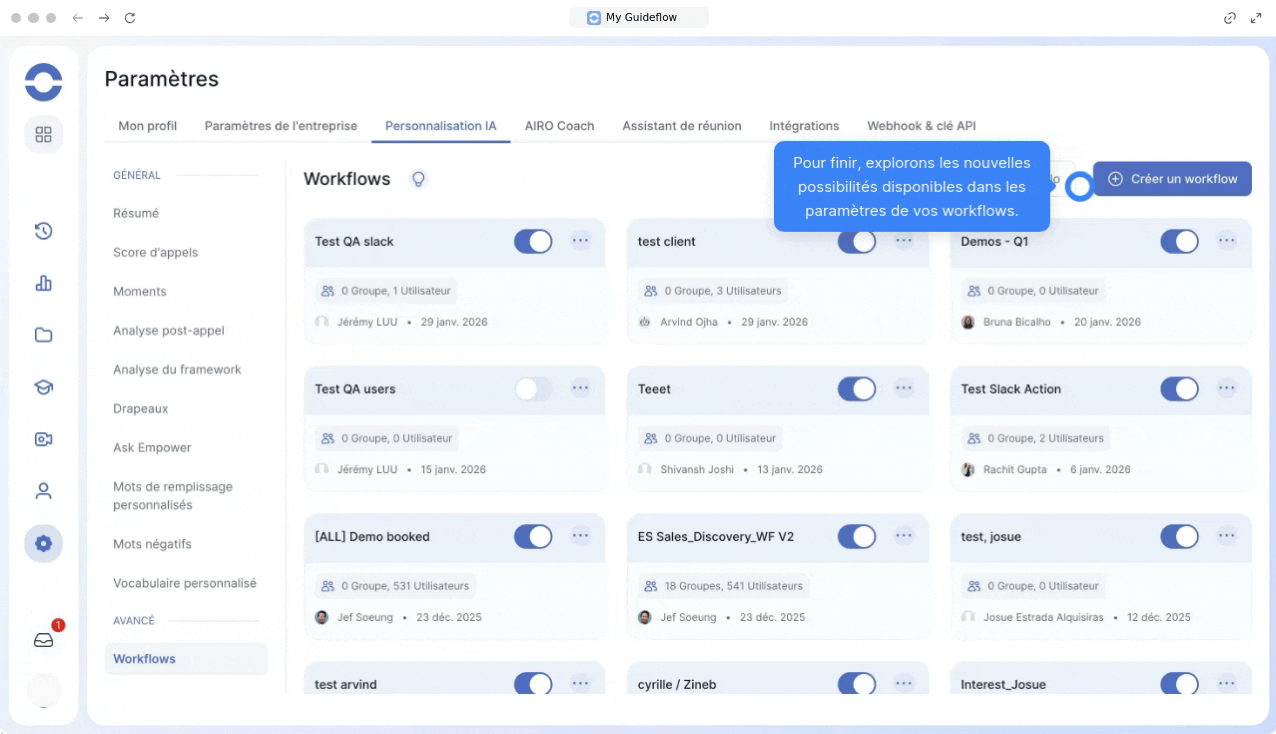 La section Paramètres > Personnalisation IA s'enrichit de nouvelles options pour automatiser votre suivi qualité.