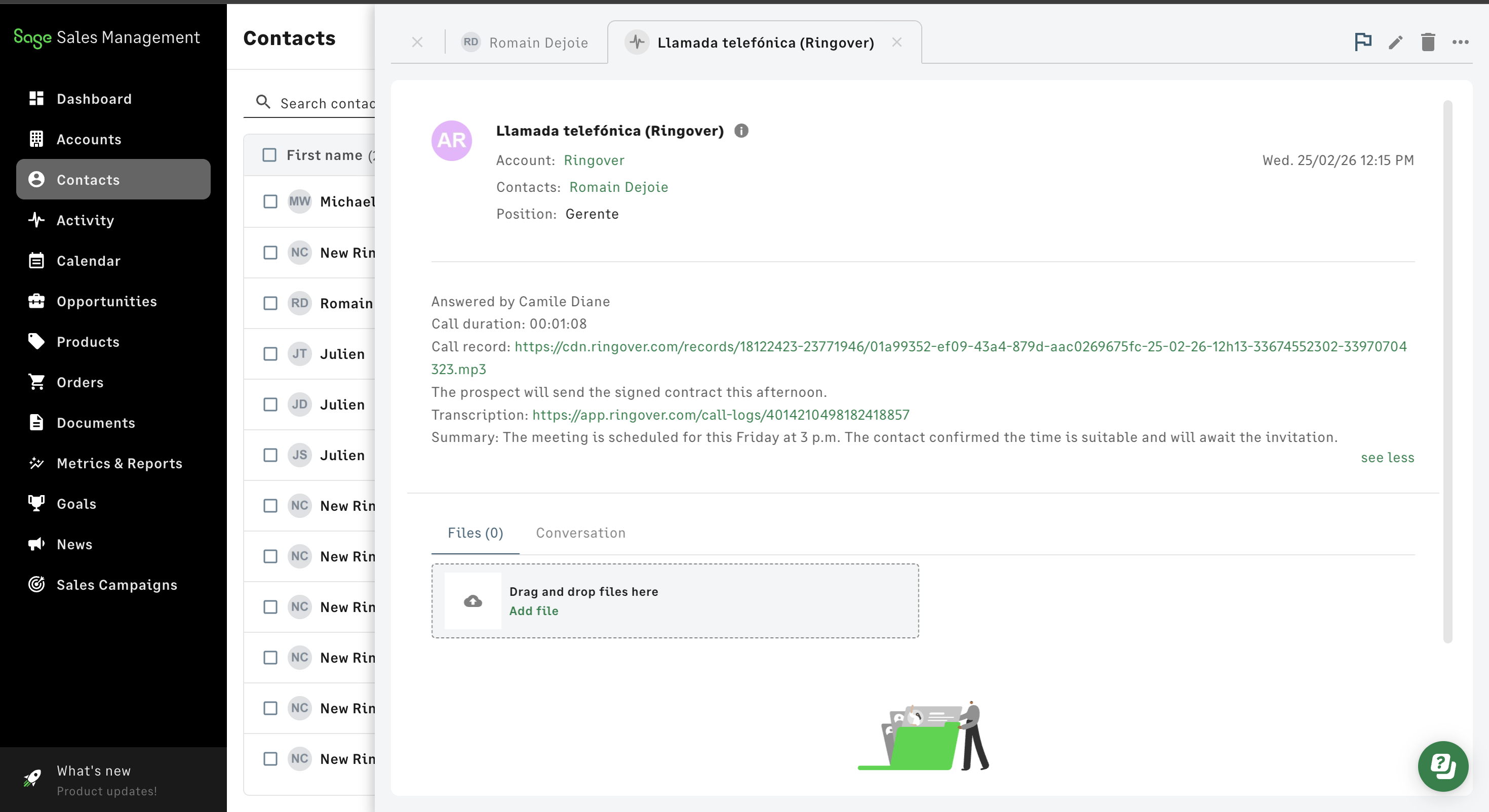 Votre intégration Ringover avec Sage Sales Management est maintenant complète ! 🎉
