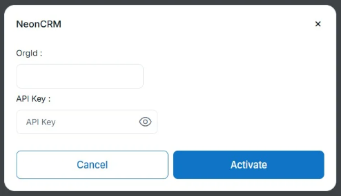 Depuis la page Intégrations, cliquez sur Neon CRM pour ouvrir le panneau de configuration.