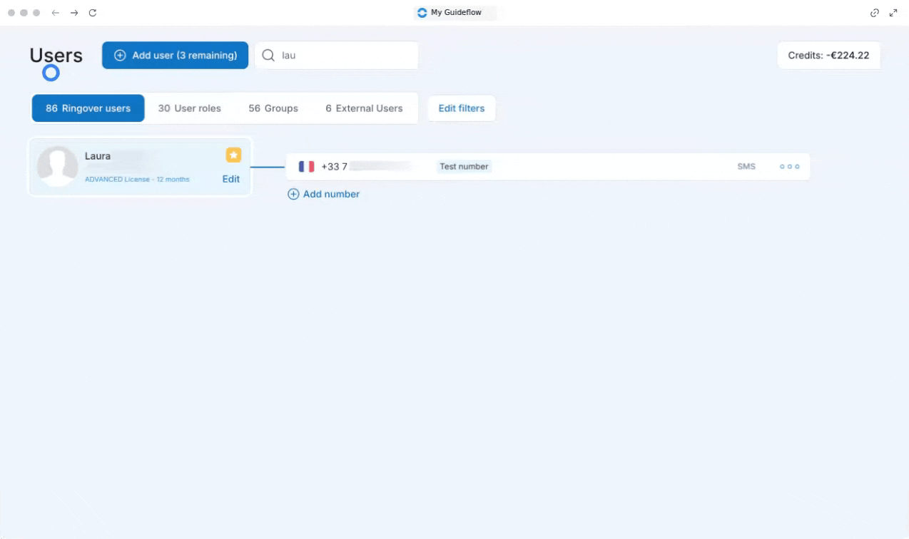 Avant de configurer le téléphone, vous devez récupérer les identifiants SIP de l'utilisateur depuis le dashboard Ringover.