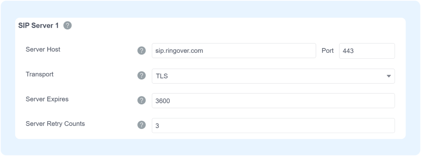 sip.ringover.comdans Select Host. - Sélectionnez TLS dans Transport et entrez